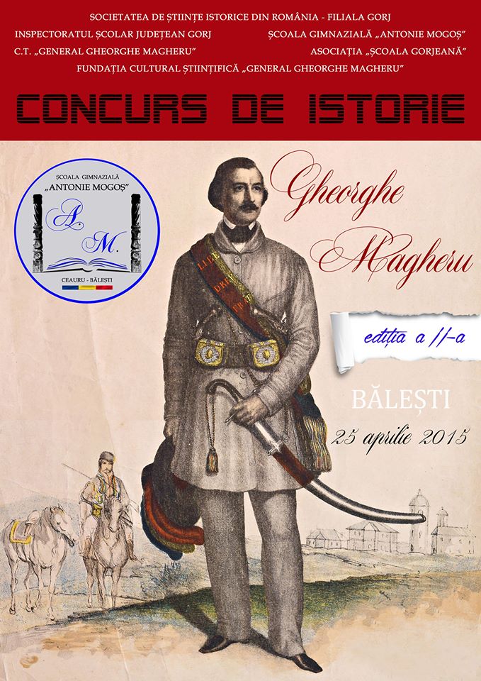 Școala Gimnazială ”Antonie Mogoș” Ceauru-Bălești în parteneriat cu Inspectoratul Şcolar Judeţean Gorj, Filiala Gorj a Societăţii de Ştiinţe Istorice, Colegiul și Fundația care poartă numele generalului pașoptist organizează o nouă ediție a Concursului de Istorie ”Gheorghe Magheru”. Competiția face parte din proiectul educațional ”Moștenirea Magherilor” implementat de Școala Gimnazială ”Antonie Mogoș” și aflat în Calendarul județean al acestor activități pentru anul școlar 2014-2015.