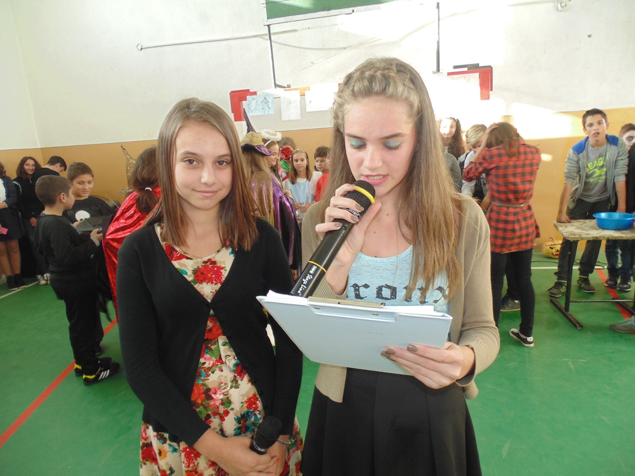 Potrivit doamnei profesoare Gabriela Hortopan, specific pentru Halloween este dovleacul cioplit ,care reprezintă lanterna lui Jack.În această zi de sărbatoare copiii se îmbracă în diferite costume și colindă de la o casă la alta strigând “Trick or treat!”(ne dati sau nu ne dați)ca o amenințare că dacă nu li se dă dulciuri,persoanei colindate i se va juca o farsă.Gazdele sunt pregătite cu o mulțime de dulciuri pentru colindători: biscuiți,mere învelite în caramel, ciocolată,bomboane,prăjituri.Cu ocazia acestei sărbatori, catedra de limba engleză, sub coordonarea profesoarei Gabriela Hortopan a organizat la Școala Gimnazială “Antonie Mogos” proiectul didactic “Halloween Party”. Elevii au participat la diferite probe specifice sărbătorii de Halloween, s-au îmbrăcat în diferite costume: lilieci,vampiri,spirite ale nopții,prințese etc. și au demonstrat talentul artistic al fiecăruia în interpretarea unor personaje conform cu costumația pe care a purtat-o fiecare.În final, toți concurenții au primit premii ce au constat în diplome, reviste și dulciuri. Pentru a sublinia specificul sărbătorii de Halloween au primit dulciuri toți cei prezenți în sală.