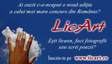 Festivalul „LicArt”, concurs destinat liceenilor pasionați de fotografie și poezie, își derulează în perioada decembrie-aprilie o nouă ediție. Coordonatorul juriului la nivel național este cunoscutul jurnalist și scriitor Radu Herjeu, membru al Consiliului Național Al Audiovizualului. Participarea este deschisă tuturor elevilor înscriși într-o instituție de învățământ preuniversitar acreditată, în clasele IX-XII. La secțiunea ”Poezie” liceenii…