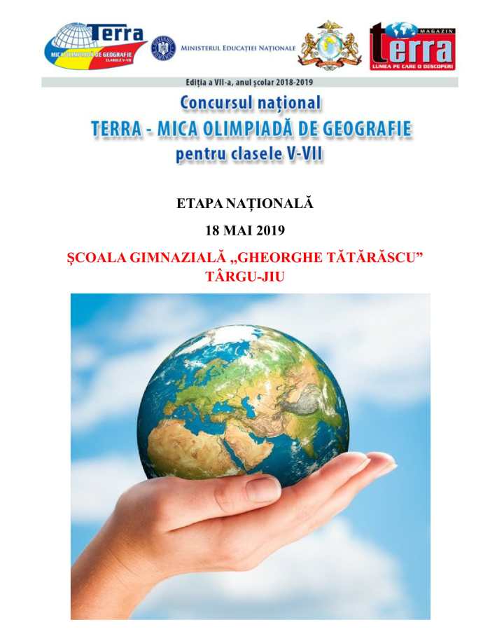 Școala Gimnazială „Gheorghe Tătărăscu” din Târgu-Jiu va fi și în acest an gazda celei de-a VII-a ediții a Concursului Național de Geografie „Terra”, care se va desfășura în data de 18 mai.
