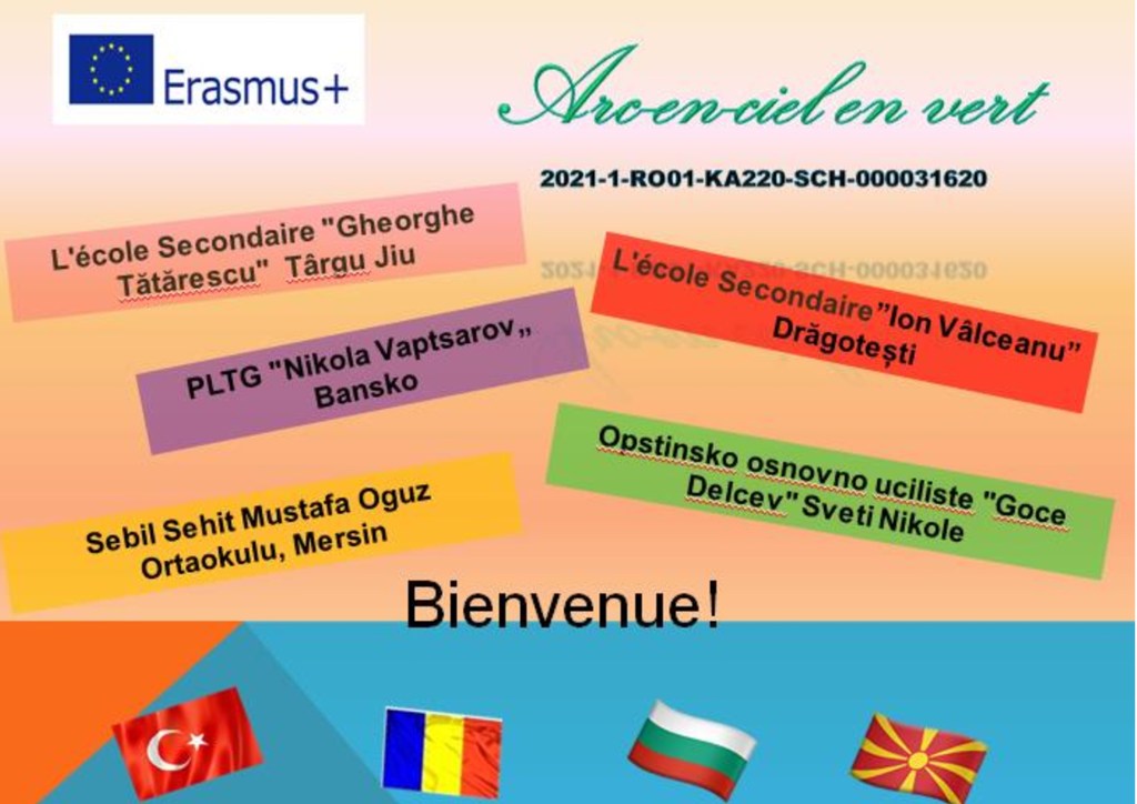 Proiectul Erasmus+ KA220-SCH-” ARC EN CIEL EN VERT”, aprobat de Agenţia Naţională pentru Proiecte Comunitare în Domeniul Educaţiei şi Formării Profesionale cu numărul 2021-1-RO01-KA220-SCH-000031620, ce se va desfăşura în perioada 1 noiembrie 2021 – 1 noiembrie 2023.
